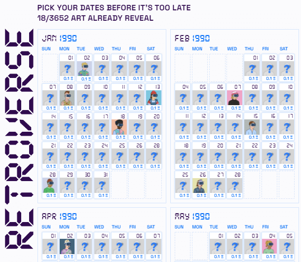 Retroverse ouvrira son calendrier d’ici mi-février. On peut déjà s’enregistrer sur la « whitelist » et choisir les 10 dates que l’on veut « réserver » en priorité ! Elles seront réservées pour vous pendant 24 heures après le « mint », moment où elles seront créés dans la blockchain. En général, lorsque tu acquiers un NFT, il vient d’une collection globale, et tu ne peux pas choisir celui que tu veux ! Ce qui est très frustrant parfois et relevé de la loterie…