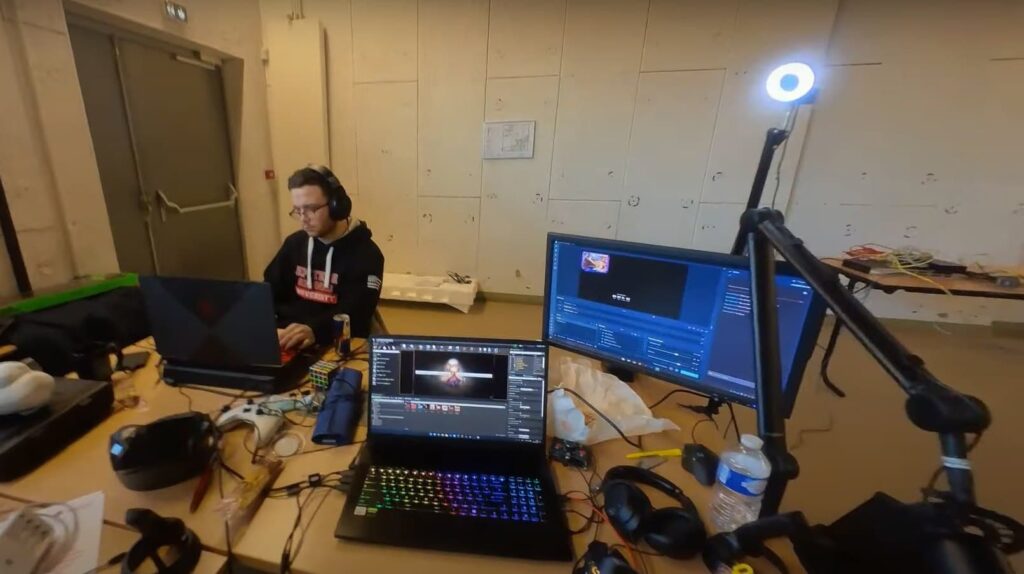 Comme tout projet de création, une bonne organisation et une bonne gestion sont des points clés à ne pas négliger. Après une phase de brainstorming, les apprenants ont réparti les différentes tâches de création dans leur équipe. Ils ont décidé de mettre en place un stream 24h/24h via Twitch, pour présenter et montrer leurs avancements. Une des parties les plus chronophages a été le développement réseau du projet, qui leur a pris 5h : « C’était vraiment galère », raconte Valentin. Une fois cette étape terminée, ils ont pu se lancer dans la création de leurs contenus (modèles 3D, le code informatique, les graphismes ou encore la musique).