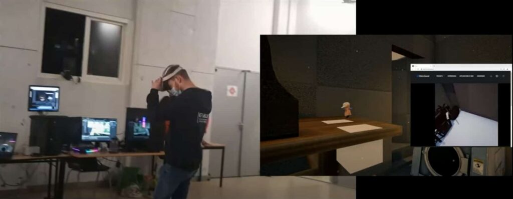 Même si évidemment 48h (avec beaucoup de fatigue) c’est trop court pour fournir un jeu complet, l’équipe a pu montrer une démonstration de leur projet. Sur cette démo, l’espace de jeu est un garage. Le joueur sur PC doit réussir à faire le tour du garage en s’aidant des éléments du décor. Éléments accessibles grâce au joueur en VR. Un jeu multijoueur où la coopération est de mise, à travers des supports différents.